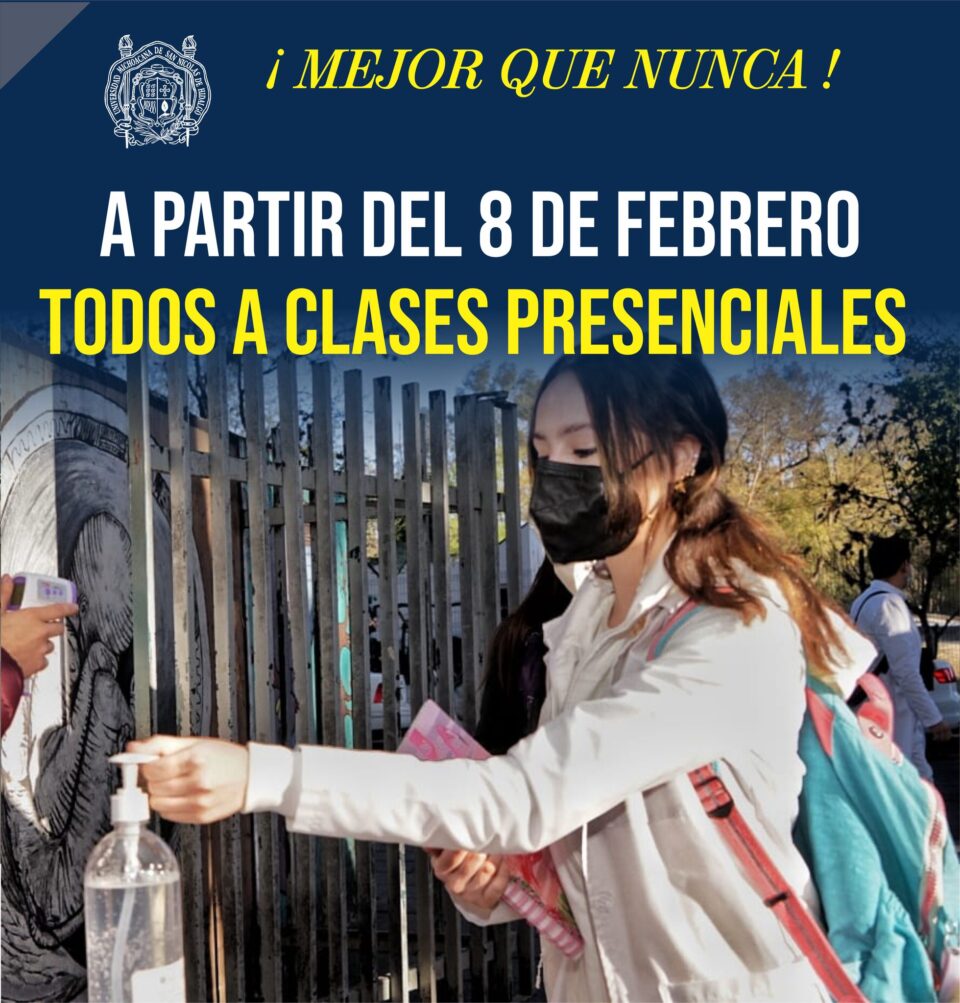 «El regreso presencial a las actividades académicas y administrativas quedó establecido en el Acuerdo Unánime del H. Consejo Universitario de la Universidad Michoacana de San Nicolás de Hidalgo (UMSNH), por lo que se estableció la fecha del próximo 8 de febrero para el regreso de la comunidad universitaria», señalaron.