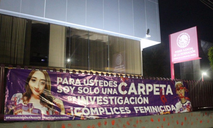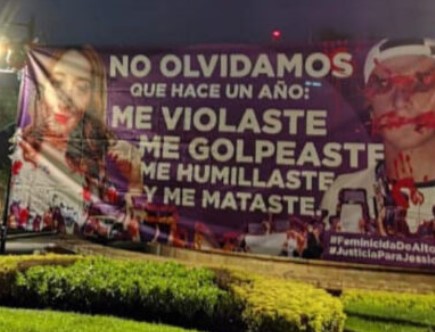 Desde la madrugada de este martes, las personas allegadas a Jessica colocaron mantas en la fuente de Las Tarascas, así como en la fachada del Palacio de Gobierno, para exigir justicia, con un mensaje que dice lo siguiente: “No olvidamos que hace un año me violaste, me golpeaste, me humillaste y me mataste”.