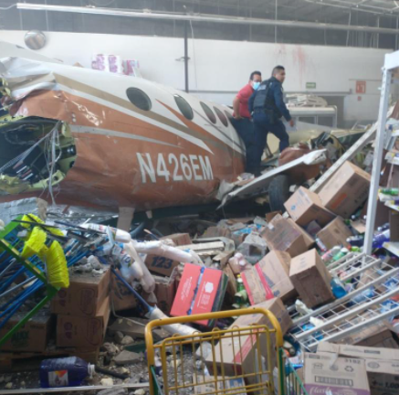 Una avioneta se desplomó sobre una bodega Aurrera en Temixco, Morelos. La avioneta derrumbó la pared y la techumbre del establecimiento que se encontraba en operando de manera cotidiana.