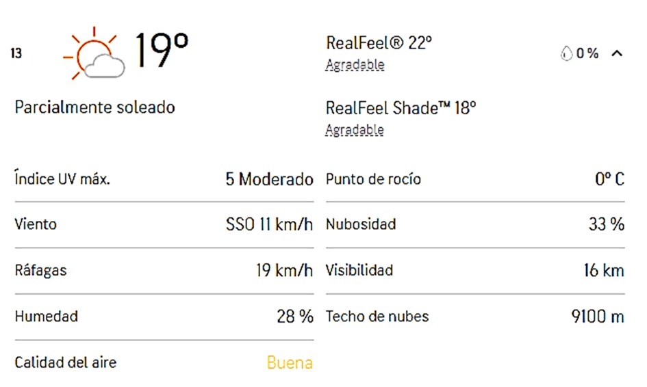Asimismo, y aunque mayormente nublado, no hay probabilidad de lluvia en la región.