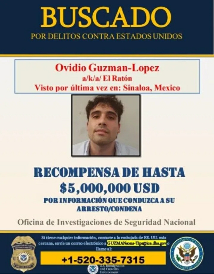 Al publicar la ficha de búsqueda y recompensa de hasta 5 millones de dólares por información que lleva a la captura o condena de Guzmán López, el Departamento de Estado estadounidense detalló las actividades y acusaciones criminales contra el hijo del «Chapo».