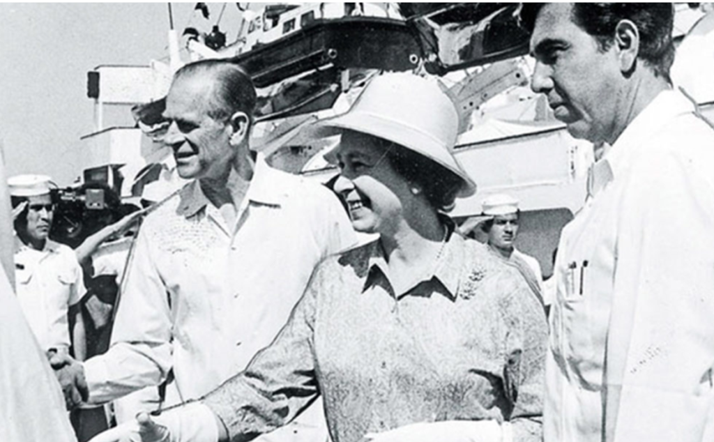 Para las 17.00 horas, la Reina y sus acompañantes arribaron al muelle fiscal y abordó el yate Britannia, donde tomó el Té con el gobernador Cárdenas, el ya citado secretario de Relaciones Exteriores y el Director de Sicartsa: “Se dio cuenta y se informó que, a las 17.50 horas, el yate Britannia abandonó el muelle fiscal, siendo remolcado por dos embarcaciones de la Marina Nacional” fue la conclusión de la visita monárquica inglesa en tierras michoacanas.