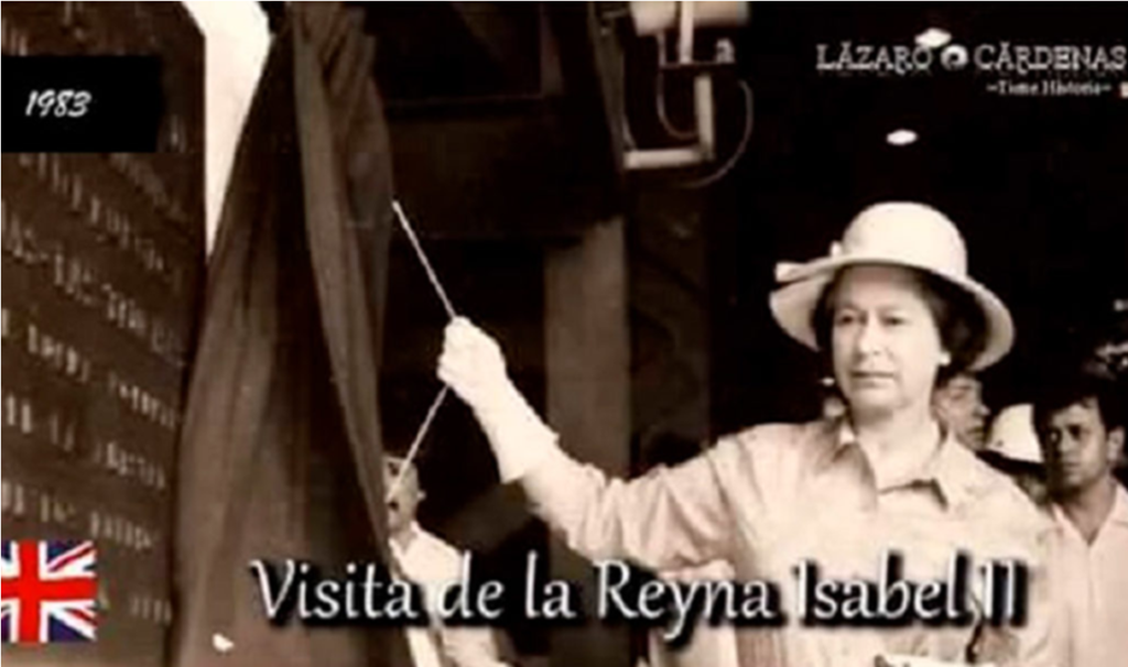 Según archivos periodísticos, a su llegada al puerto michoacano Isabel II abordó un autobús para hacer un recorrido por las instalaciones de Altos Hornos de México Sicartsa.