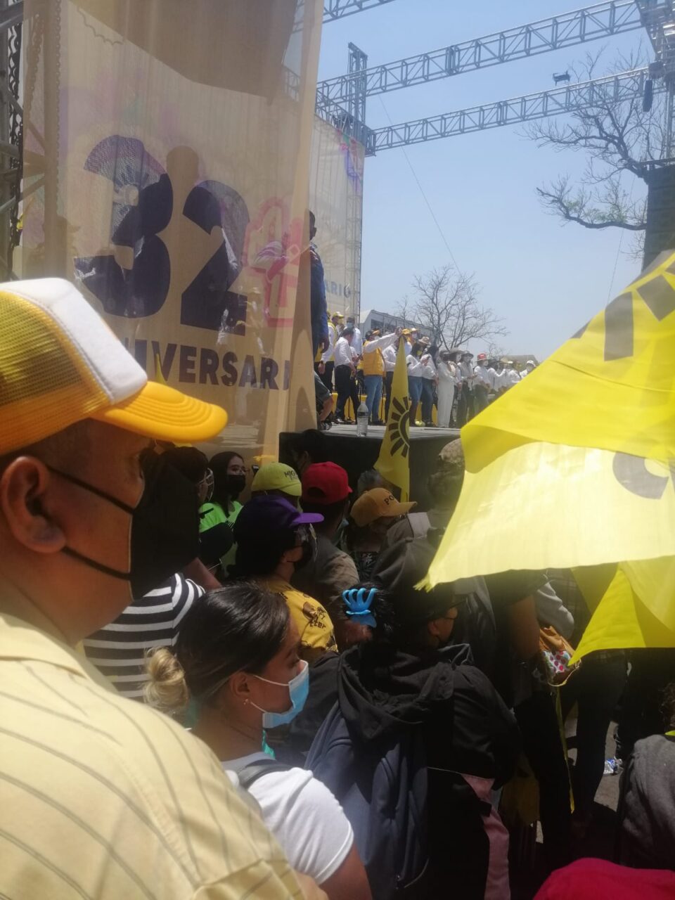 Cientos de personas que se congregaron en el primer cuadro de la ciudad por el 32 Aniversario del Partido de la Revolución Democrática (PRD).
