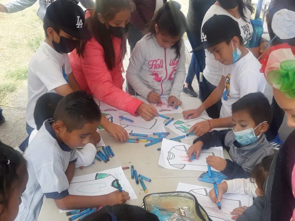 -Pinta de mural por niños sobre el tema «Personas desconocidas y paz».